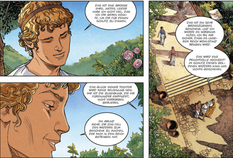Intrigen sind auch wieder an vorderster Front anzutreffen. Hier verrät eine frischgebackene Königin ihren Mann, hier stößt ein Bruder den anderen vom Thron. Und auch weniger offenschtlich werden Fallstricke geknüpft, die erst nach und nach zu Tage treten. Wie immer ist auch der Anhang des Buches Gold wert, denn was im Comic nicht ganz deutlich wurde, das wird hier leicht verständlich erklärt und führt noch immer ein paar Treppenstufen weiter hinab in das riesige Reich der Mythen der Antike.