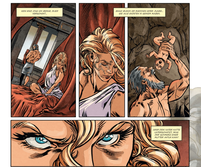 Das Ganze wird von den beiden Illustratoren Dim D. und Federico Santagati bildgewaltig dargestellt, vom reinen Chaos bis hin zur schönen Eleganz des Olymp. Wir erfahren, mit wem sich Zeus verbündete, wer ihm welche Kräfte verlieh. Und das in herrlichen Bildern, die einmal mehr beweisen, warum diese Comicreihe einfach nur fantastisch ist.