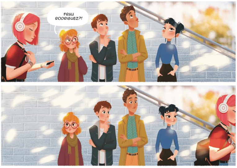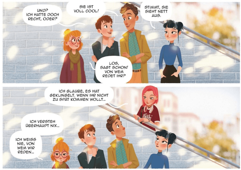 Die unfassbar schönen, detaillreichen, farbenfrohen Zeichnungen von Aveline Stokart machen diese sowieso schon herausragende Geschichte zu etwas ganz besonderem. Selbst ohne die wandelnden Haarfarben erkennt man die verschiedenen Elles auf Anhieb, versteht ihre Gefühle und Gedanken. Dabei stellt sich natürlich immer wieder die Frage: Hat Elle eine dissoziative Identitätsstörung? Oder steckt noch etwas ganz anderes hinter ihrer gespaltenen Persönlichkeit?