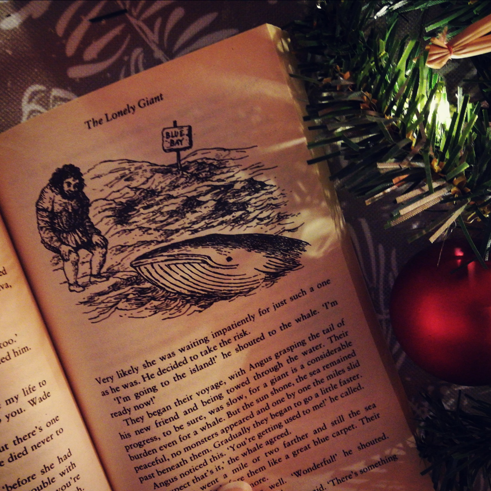 Goldentop meint, eine Riesin auf einer fernen Insel erspäht zu haben. Aber Angus zaudert. Noch auf dem Sterbebett riet ihm seine Mutter einst, dass er niemals durch Salzwasser schwimmen soll. Doch die Einsamkeit ist zu groß und er macht sich auf zum großen Meer. Dort hilft er einem gestrandeten Wal zurück ins Meer und wird zum Dank von ihm zur Insel getragen. Doch während der Überfahrt spürt er, wie der Wal immer schneller wird, als wäre sein Gewicht verringert. Und tatsächlich! Als er am Ufer der Insel anlangt, da hat er nur noch die Hälfte seiner ehemaligen Größe! Die Riesin auf der Insel will jedoch einen besonders stattlichen Riesen zum Gemahl und mit einem festen Griff schleudert sie ihn zurück aufs Meer hinaus.